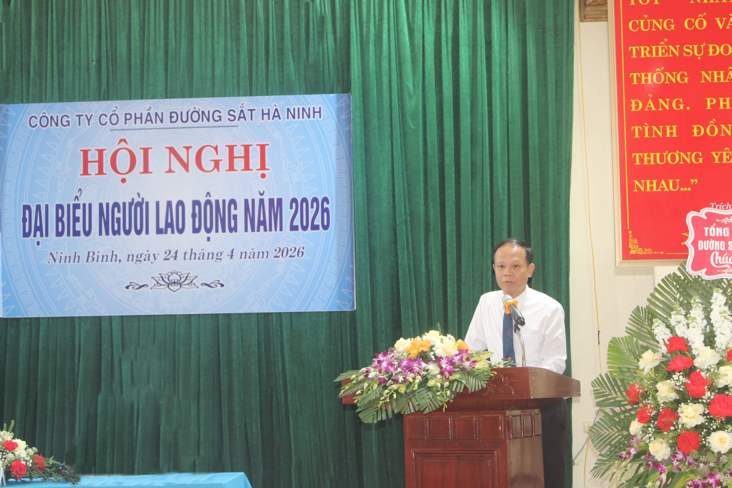 Ngày 24/4/2026, Công ty CPĐS Hà Ninh đã tổ chức Hội nghị Người lao động năm 2026 với sự tham dự của 99 đại biểu chính thức, đại diện cho gần 600 người lao động trong toàn Công ty. Hội nghị vinh dự đón tiếp ông Nguyễn Thanh Hoàn – Phó Chủ tịch Công đoàn Đường sắt Việt Nam đến dự và chỉ đạo.
