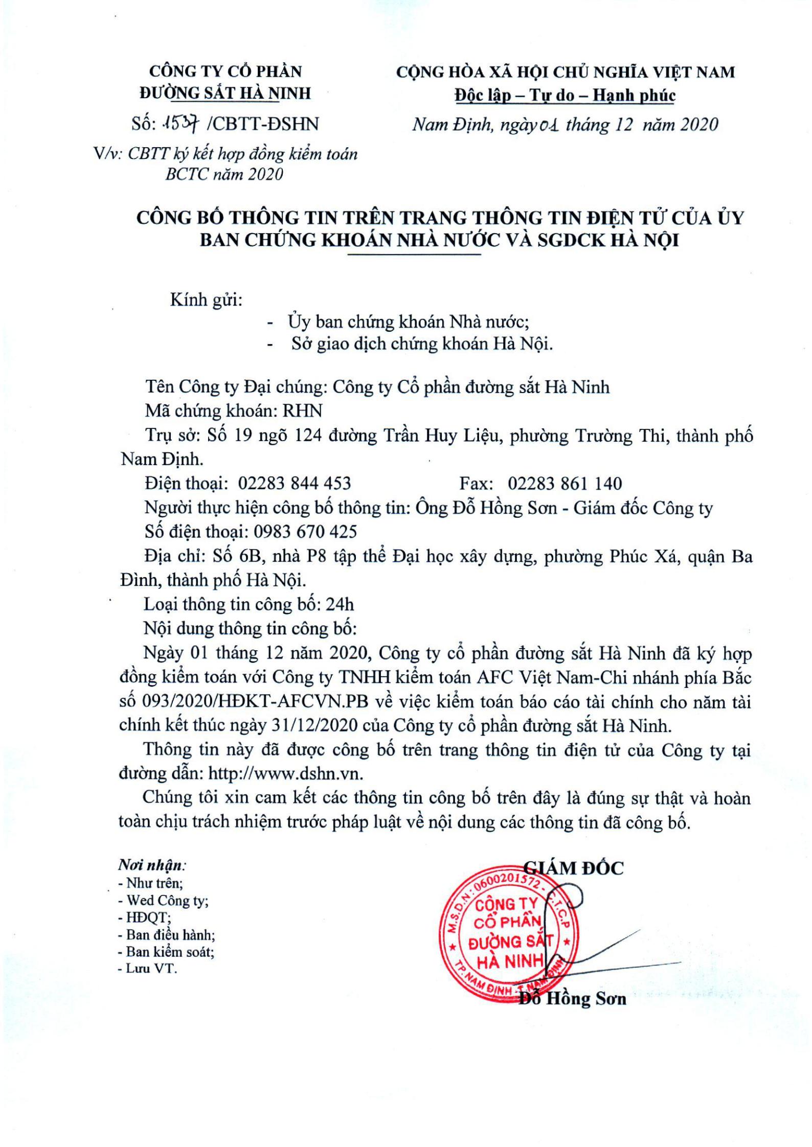 CBTT V/v: Đã ký kết hợp đồng kiểm toán năm 2020