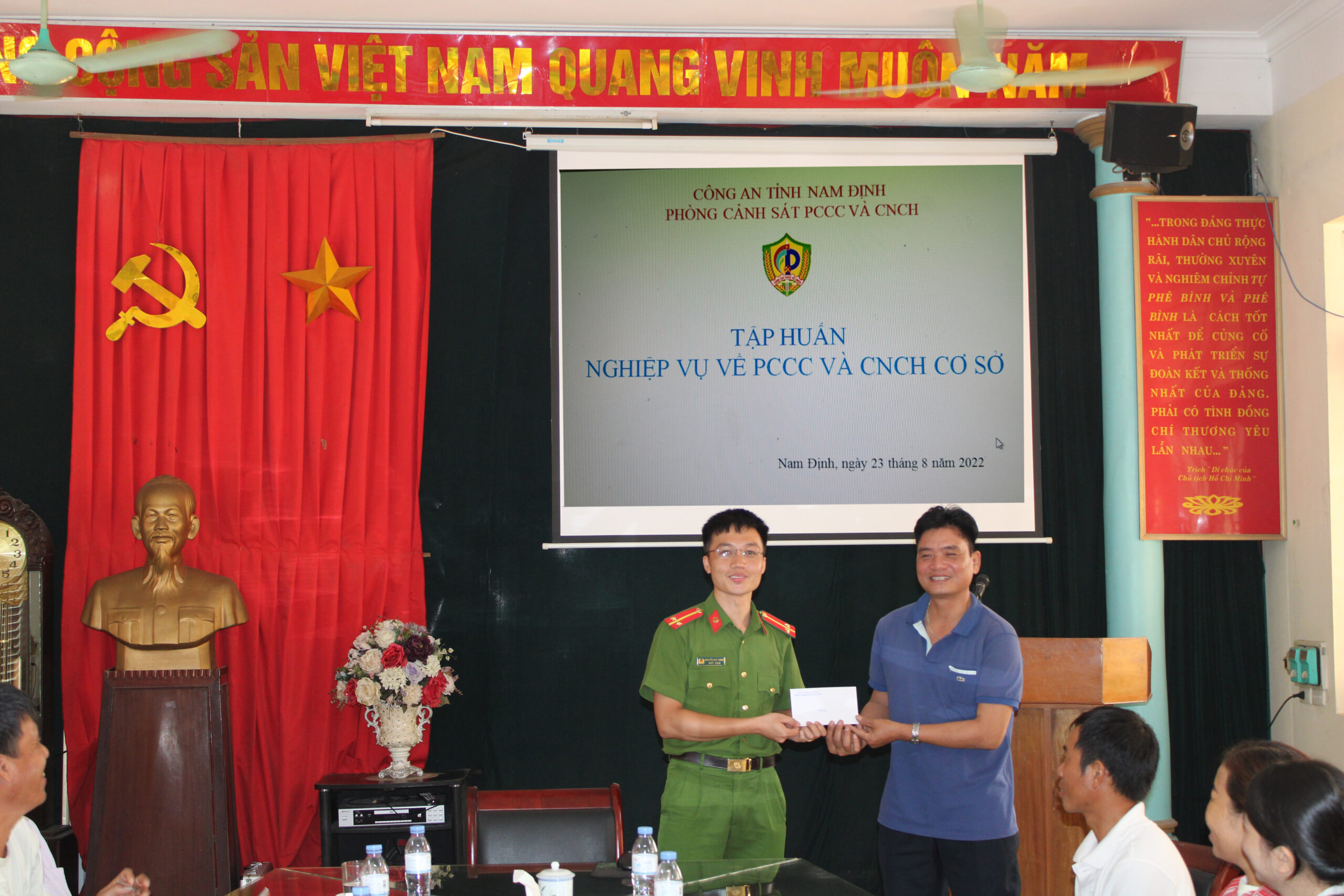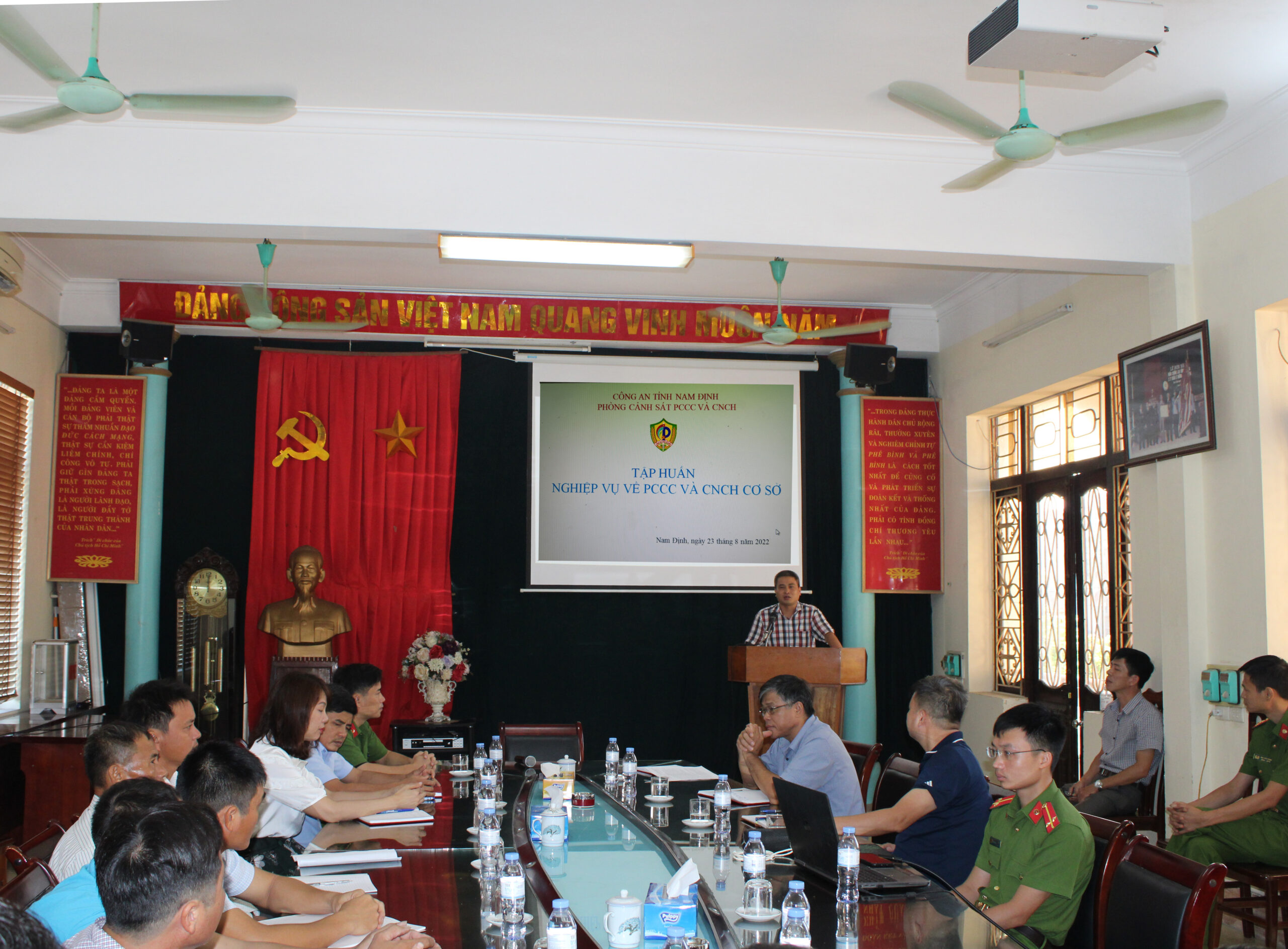 Ngày 23 tháng 8 năm 2022, thực hiện KH số 549 KH – ĐSHN về huấn luyện nghiệp vụ phòng cháy chữa cháy và cứu nạn cứu hộ năm 2022, Công ty CPĐS Hà Ninh đã phối hợp với phòng Cảnh sát PCCC và CNCH – Công an tỉnh Nam Định tổ chức tập huấn nghiệp vụ PCCC và CNCH.
