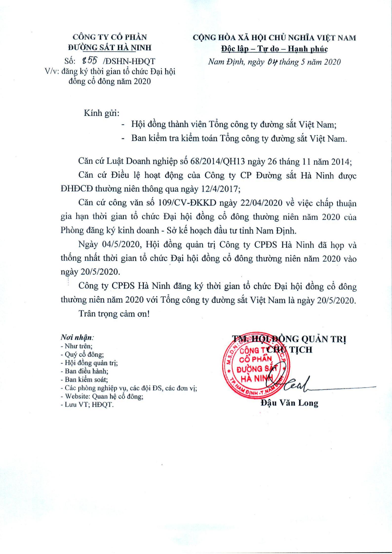 QUAN HỆ CỔ ĐÔNG CV Số 855/ ĐSHN ngày 04/5/2020 V/v đăng ký thời gian tổ chức Đại hội đồng cổ đông năm 2020